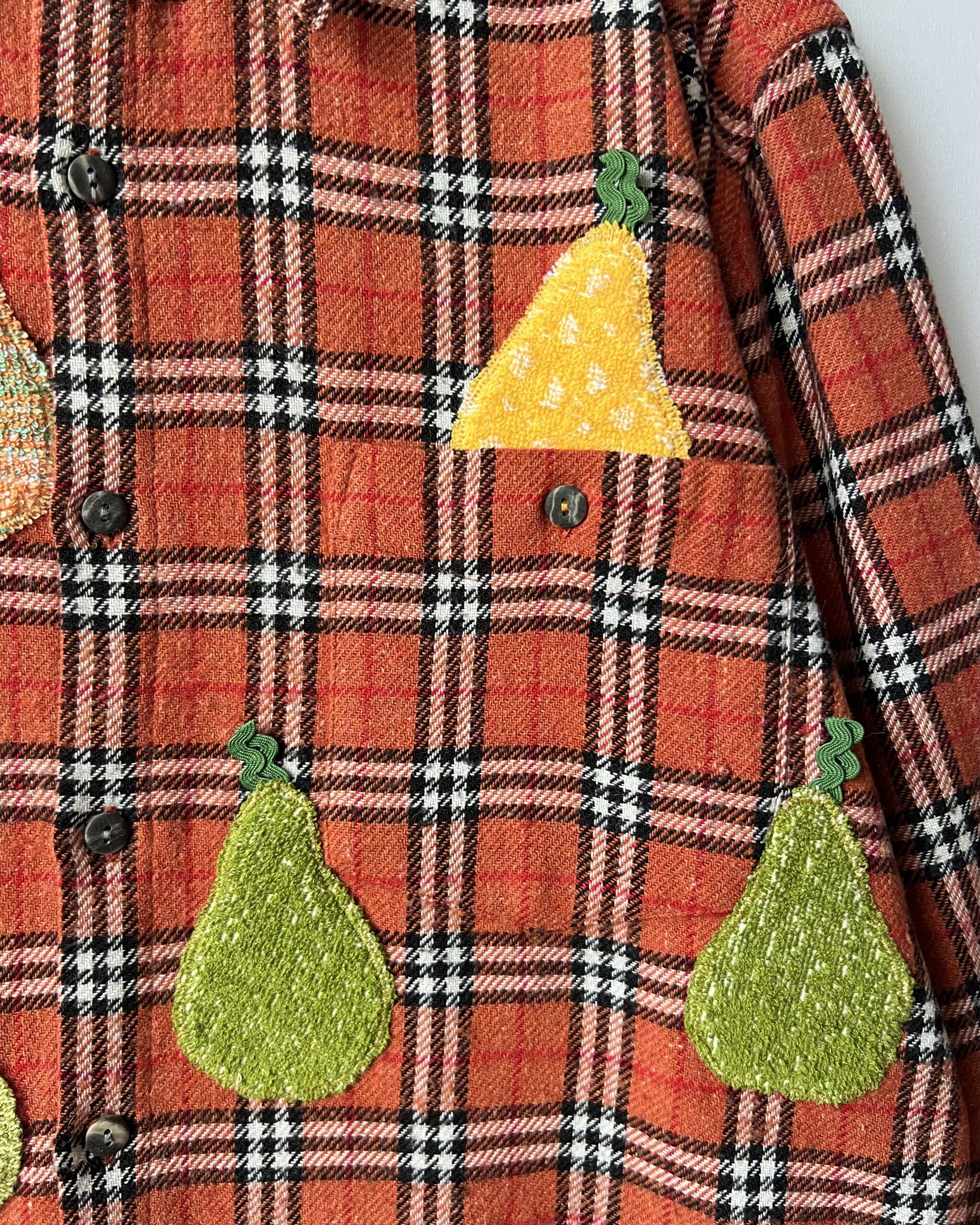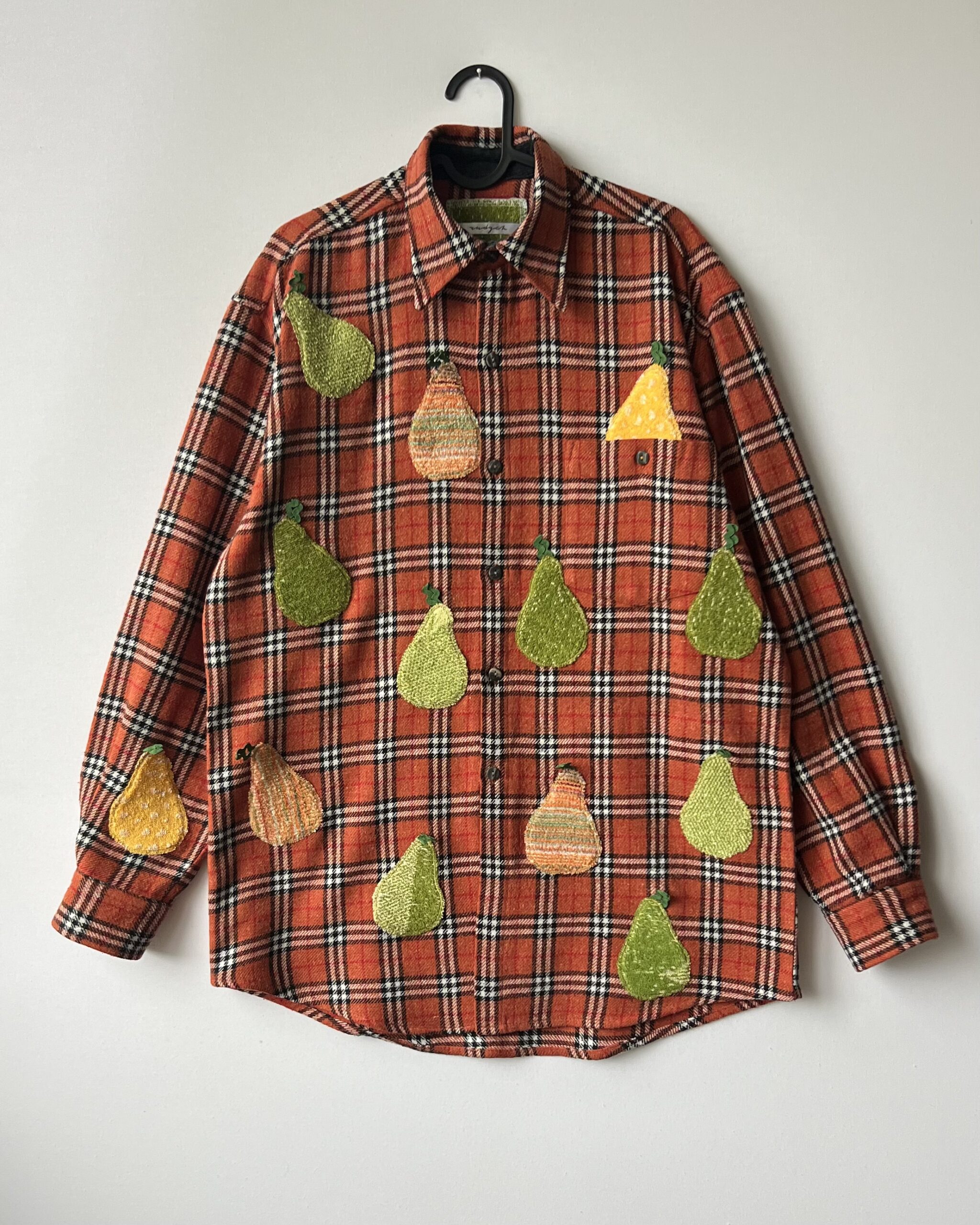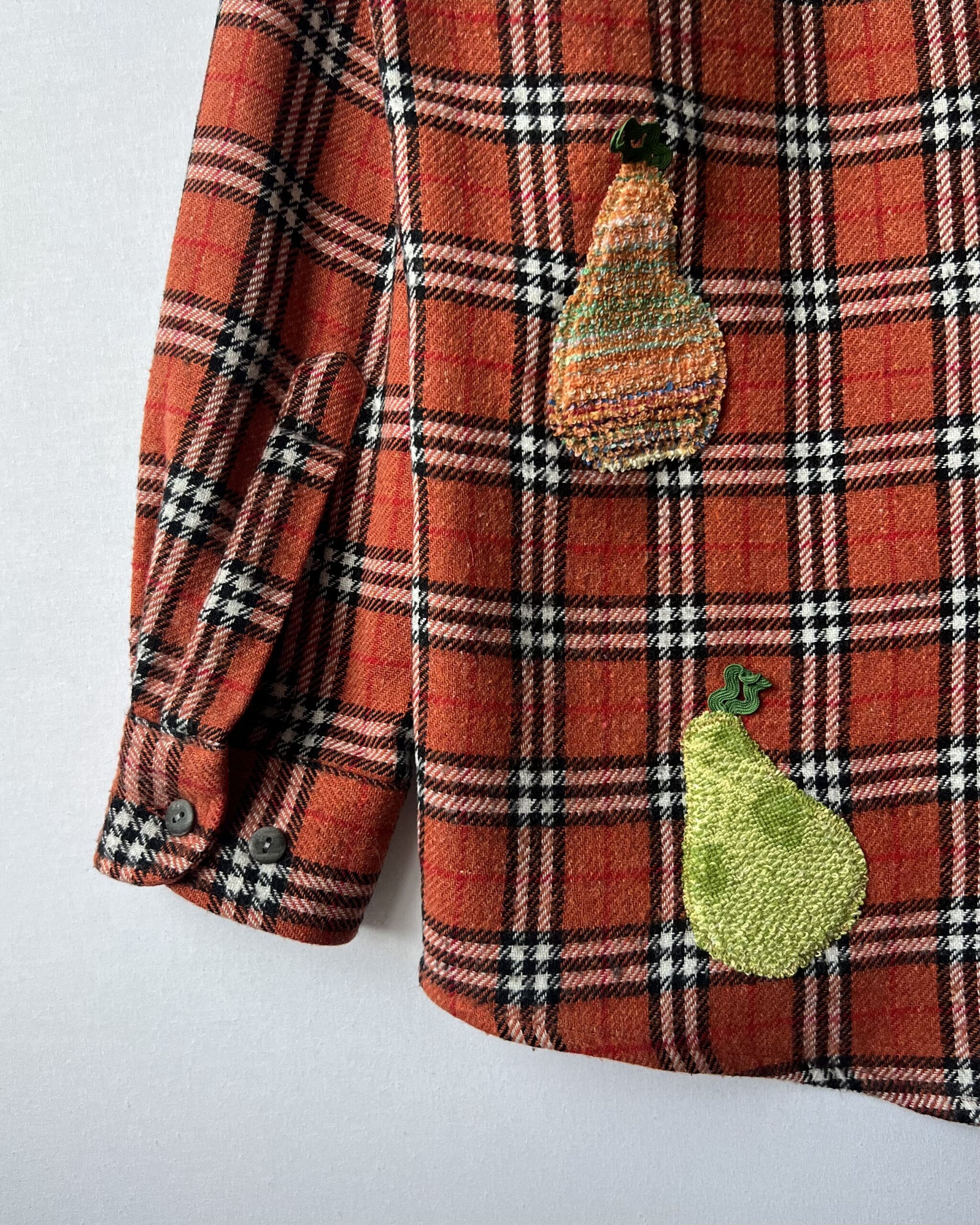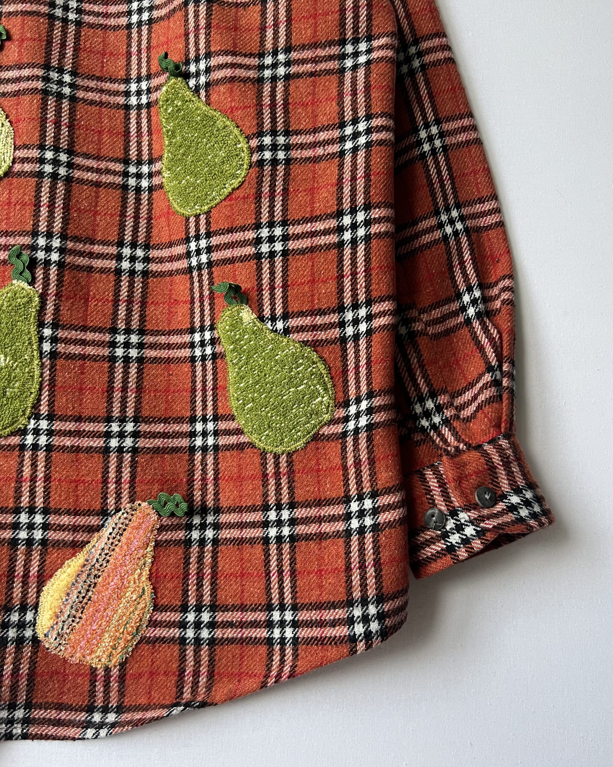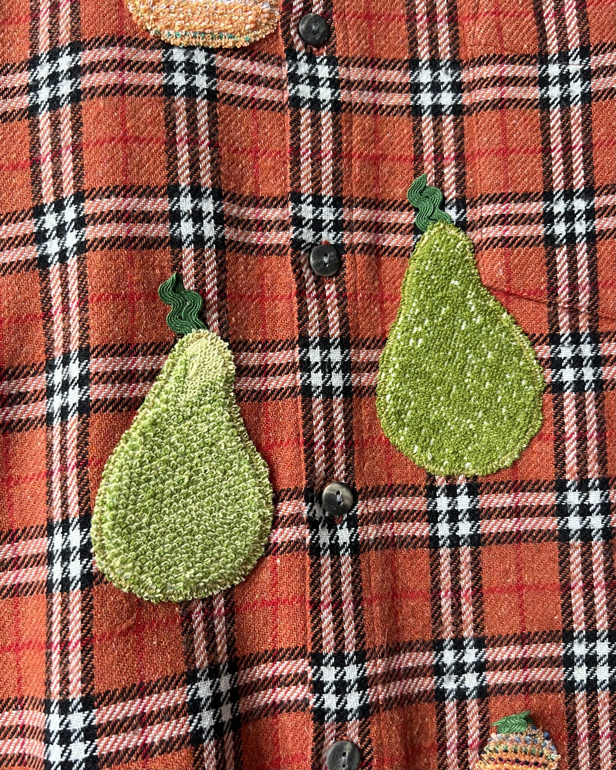 Vintage Plaid Shirt with Pear Details Made from Retro Towel Remnants 🔹 Fabric: acrylic, wool, polyester and cotton