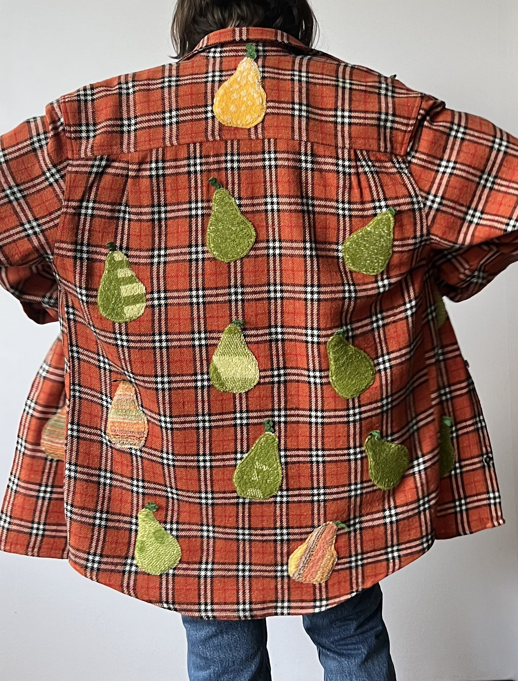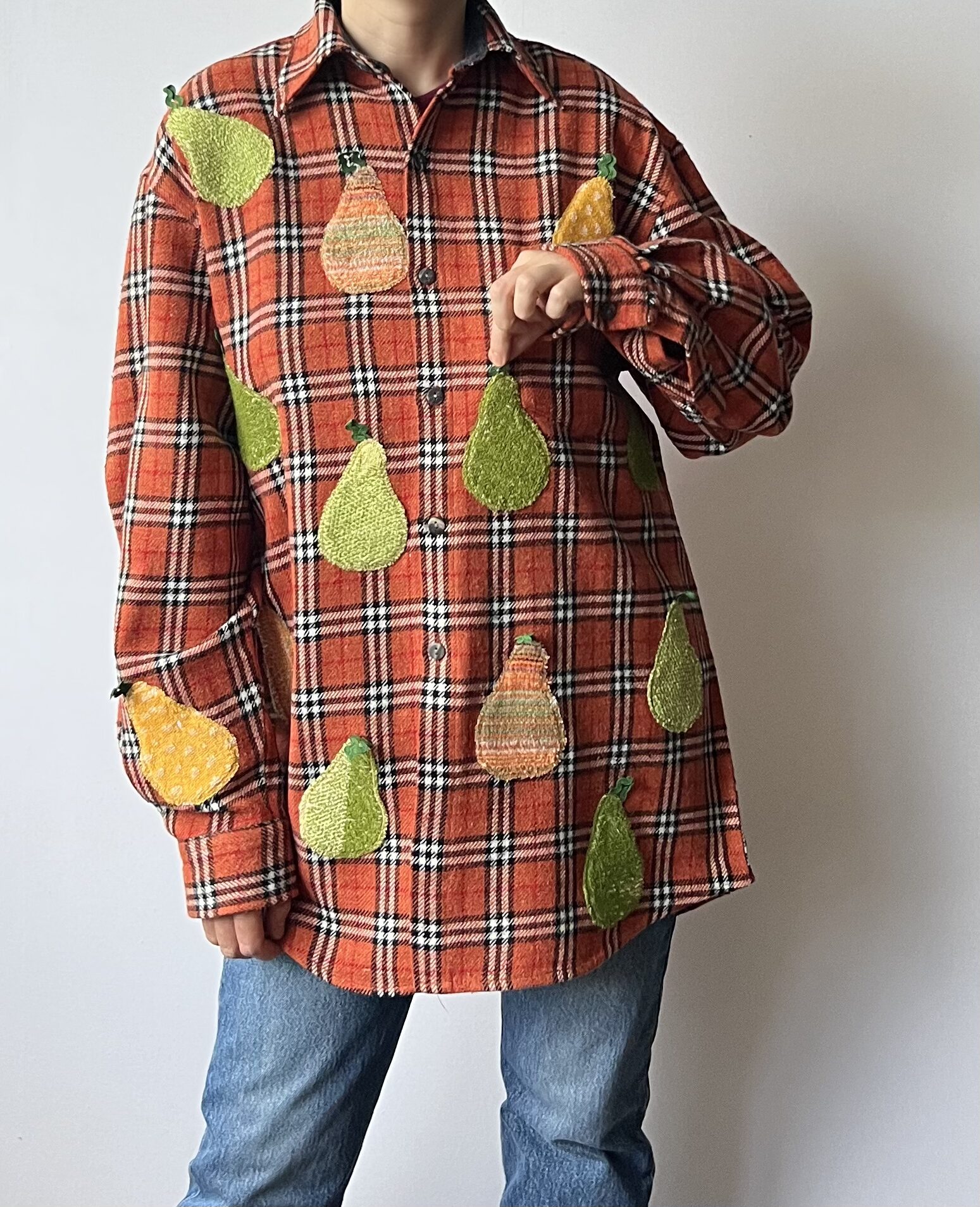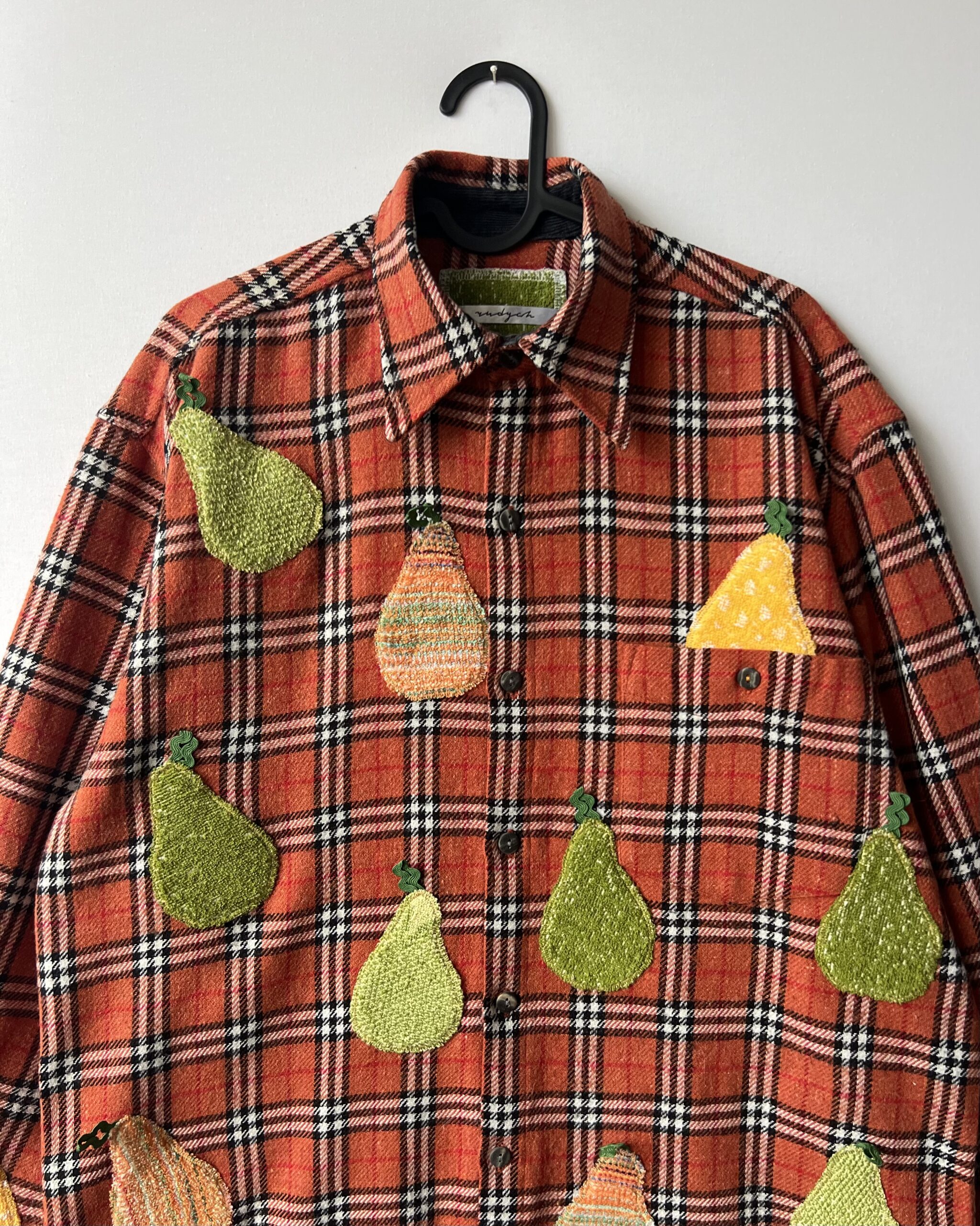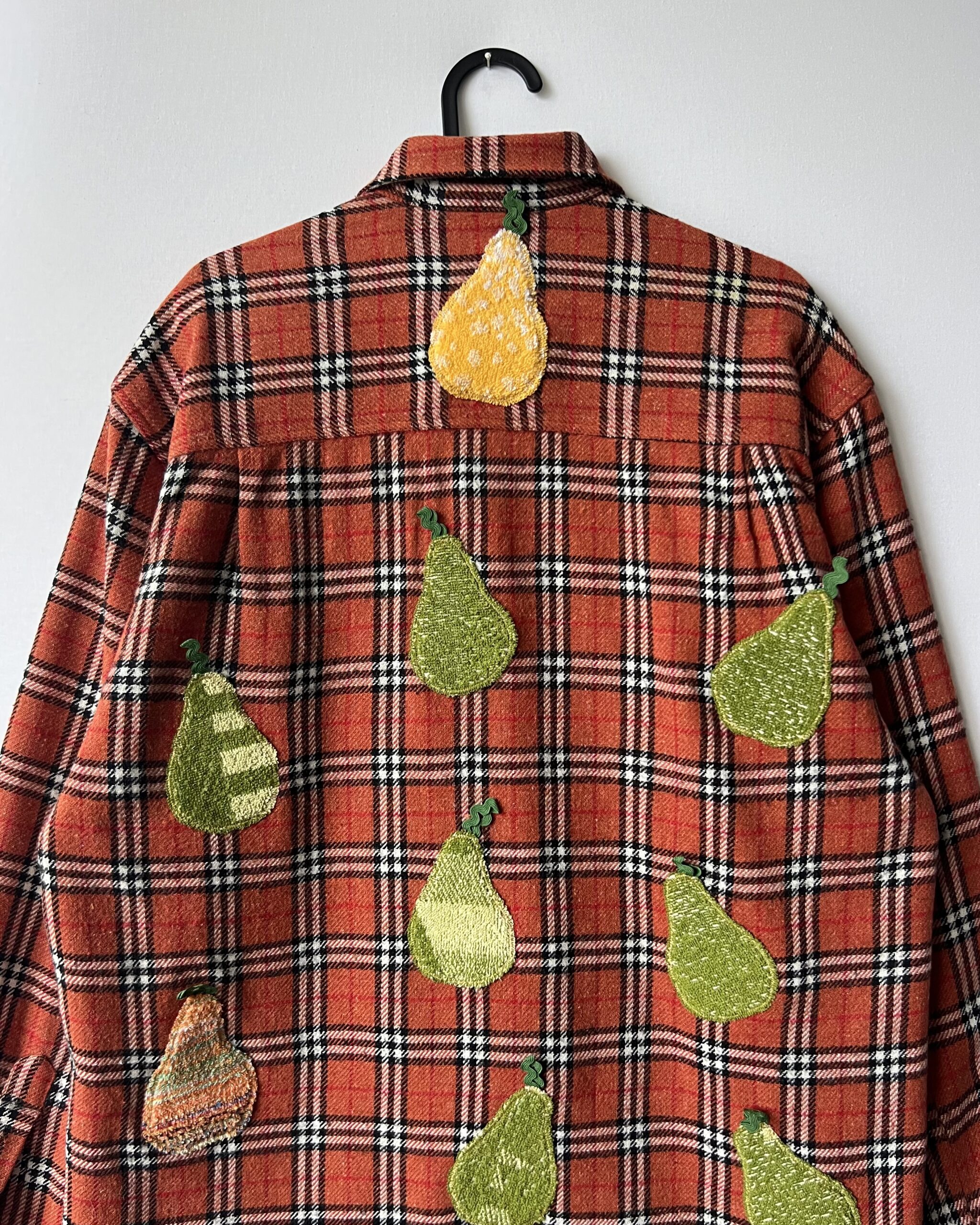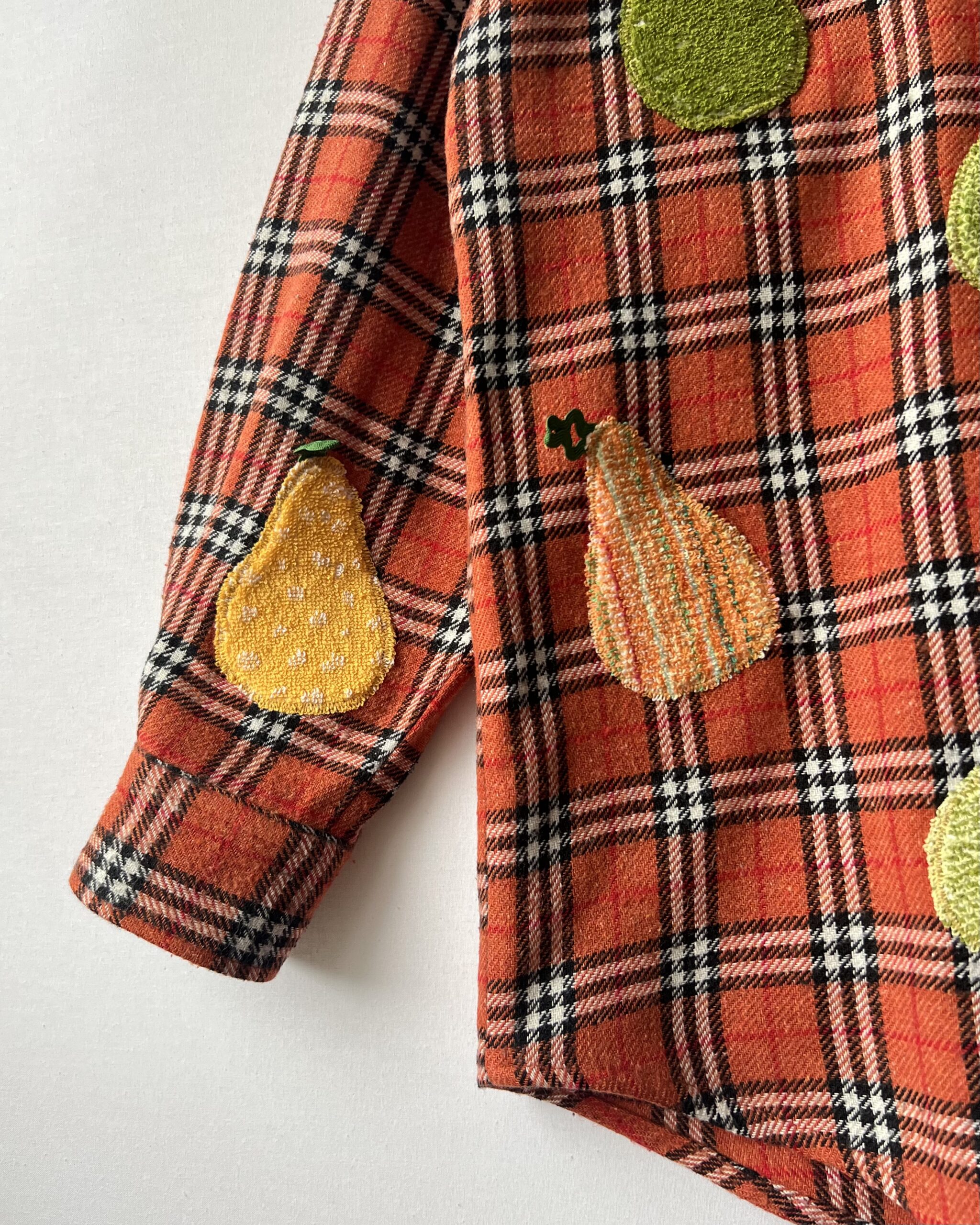 Vintage Plaid Shirt with Pear Details Made from Retro Towel Remnants 🔹 Fabric: acrylic, wool, polyester and cotton